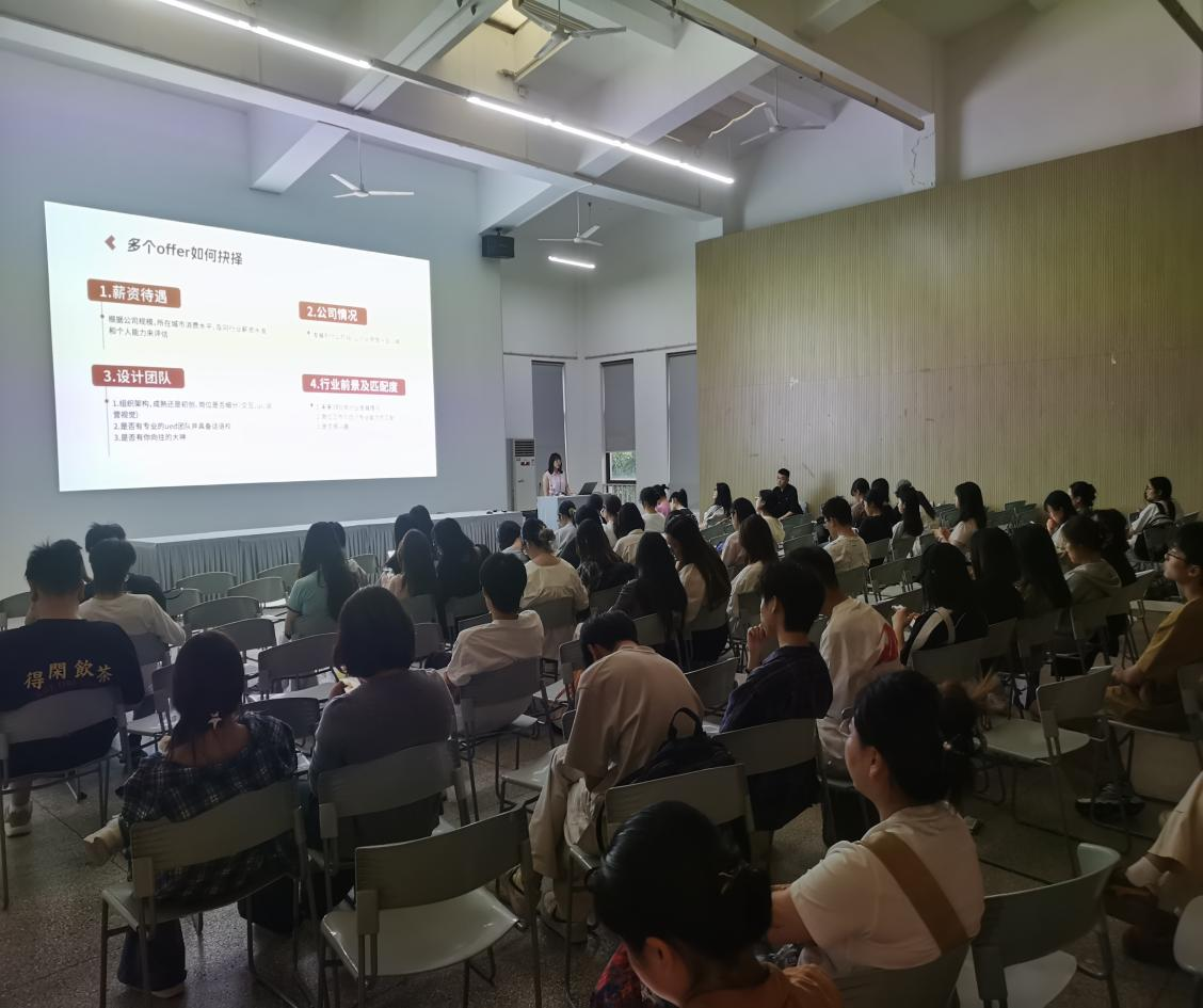AIGC设计专家汪巧巧以“数字时代的环境艺术设计就业新路径”为主题,从行业趋势、岗位能力要求、作品集打造、面试技巧等方面进行了系统讲解。她强调,AIGC、虚拟空间设计、可持续设计等新兴方向正成为环境艺术学子就业的新蓝海。