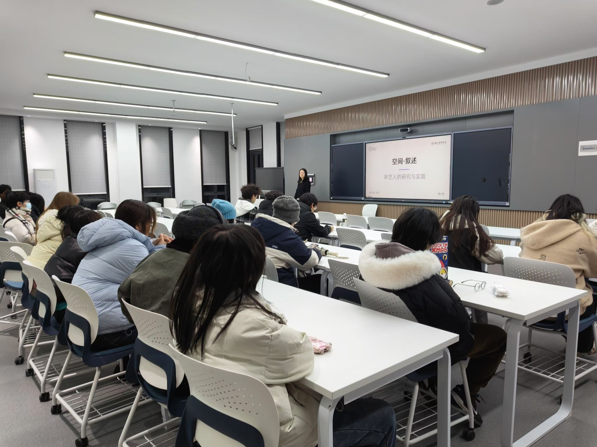 12月23日,晏以晴老师以《空间·叙述——环艺人的研究与实践》为题,与环境设计专业的同学们深入探讨了空间设计中的叙事逻辑与人文关怀,鼓励大家在实践中通过空间讲述中国故事。