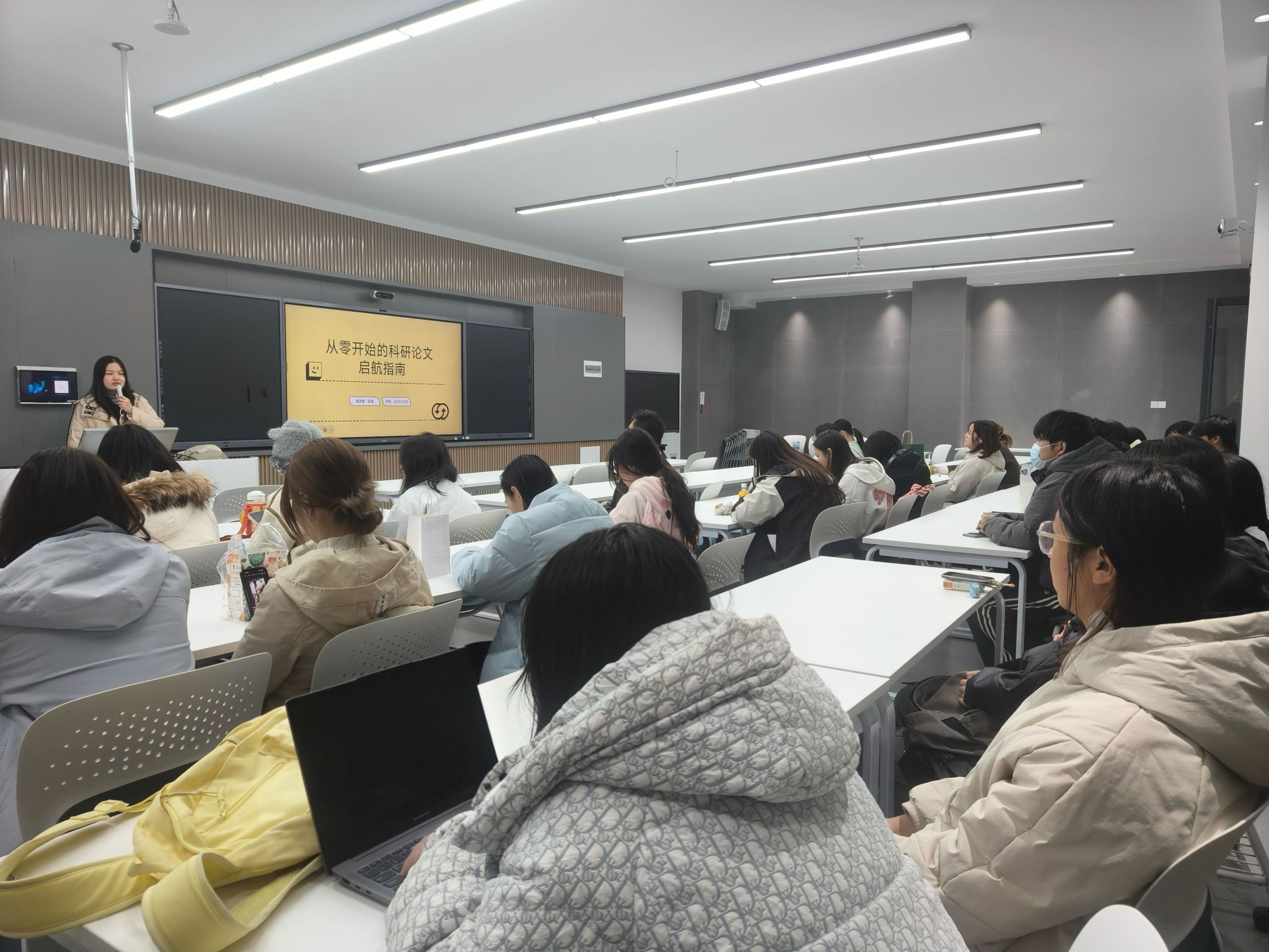 11月20日,吴笛老师以《从零开始的科研论文启航指南》为题,从选题逻辑到规范写作,为初入大学的新生提供了详实的学术入门指导,勉励同学们尽早树立严谨的科研态度。
