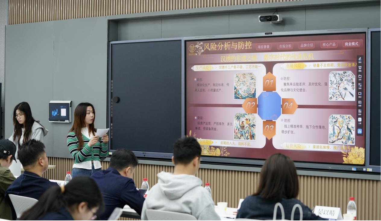 路演环节,各参赛团队依次登台,围绕项目背景、设计理念、创新亮点与落地规划等内容展开精彩汇报。评委们针对每个项目逐一提问、精准点评,从艺术表达、技术落地、逻辑完善、竞争力提升等方面给出具体指导建议,为项目优化升级指明方向。