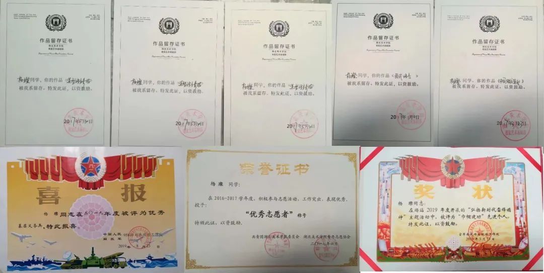 获得视觉艺术基础部作品留存证书共7张