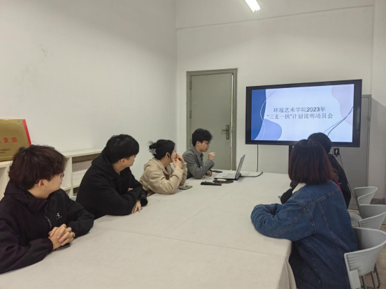 2023年4月24日,环境艺术学院在A8党员活动室举办“2023年‘三支一扶’计划说明动员会”,会议由2019级辅导员陈金奕老师主持。
